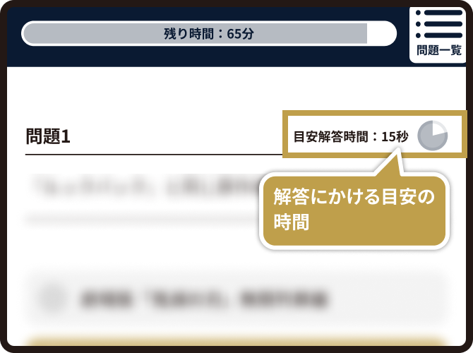この「解答目安時間」を全て足すとおおよそ制限時間の65分になります。