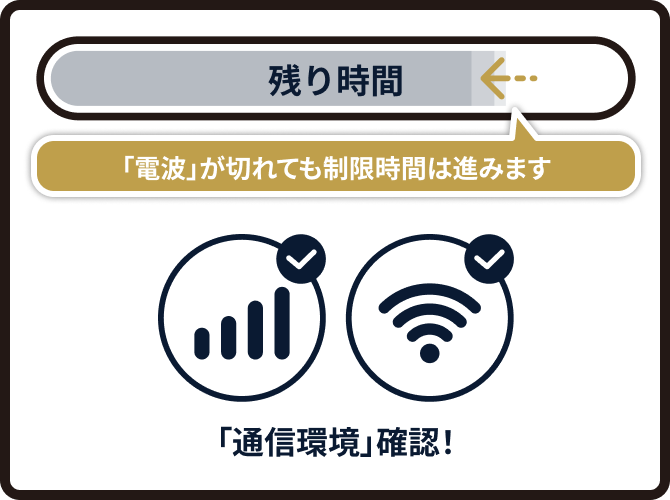 試験中に「電波」が切れても、制限時間は止まらずに進んでしまいます。